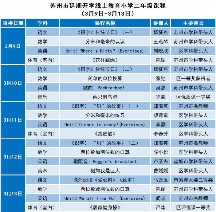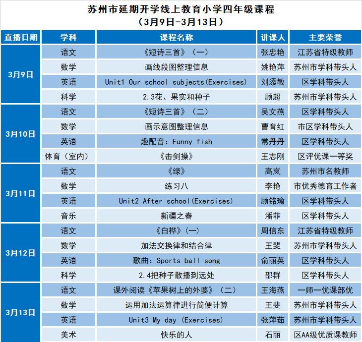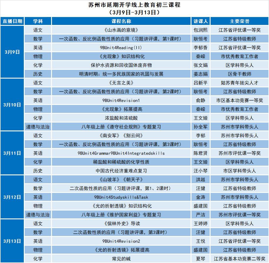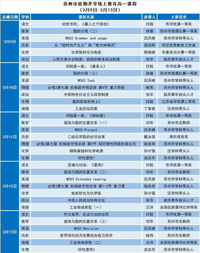 苏州线上教育中心最新课表(3月9日至3月13日)
