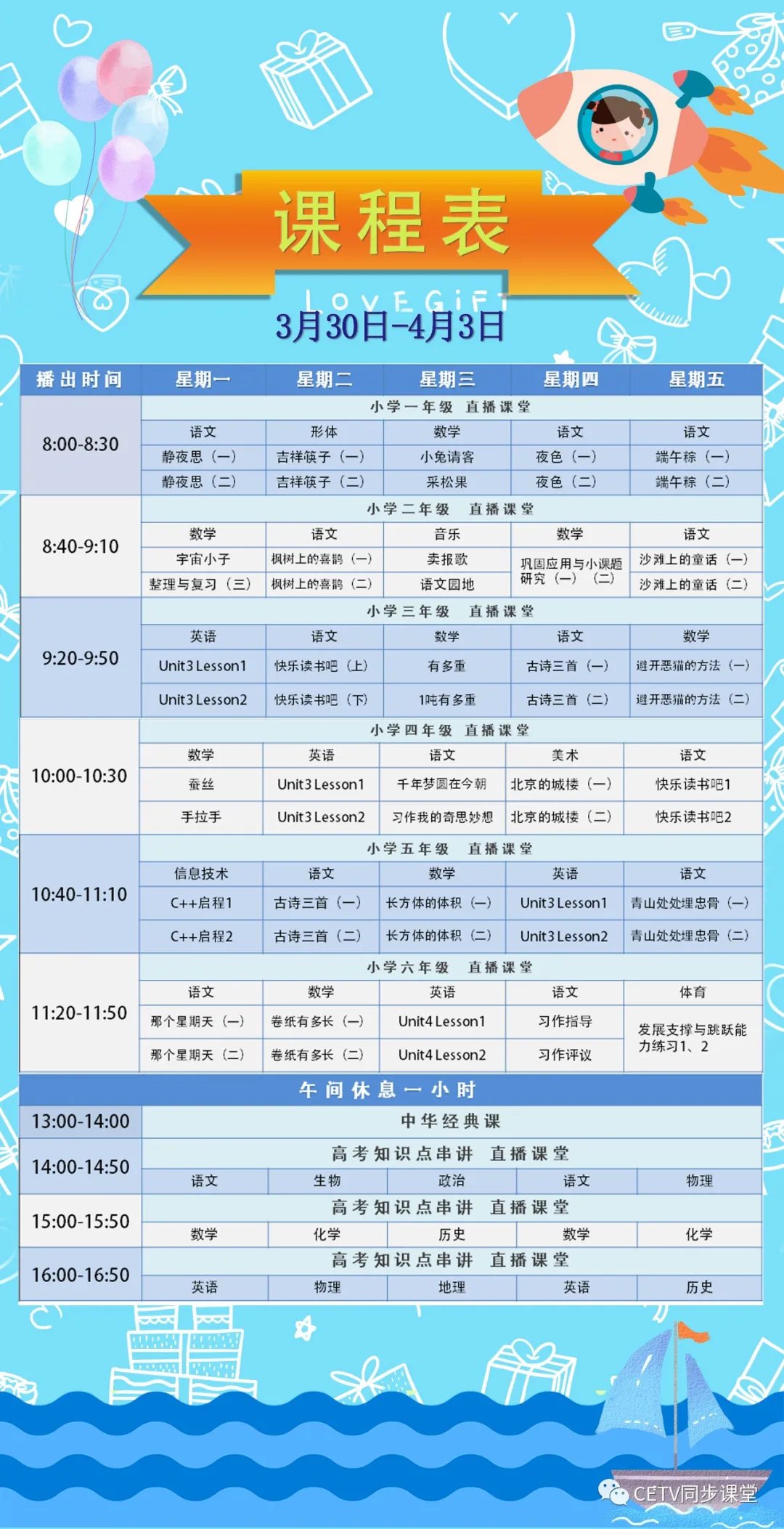 CETV4同上一堂课课程表(cetv同上一堂课回看)
