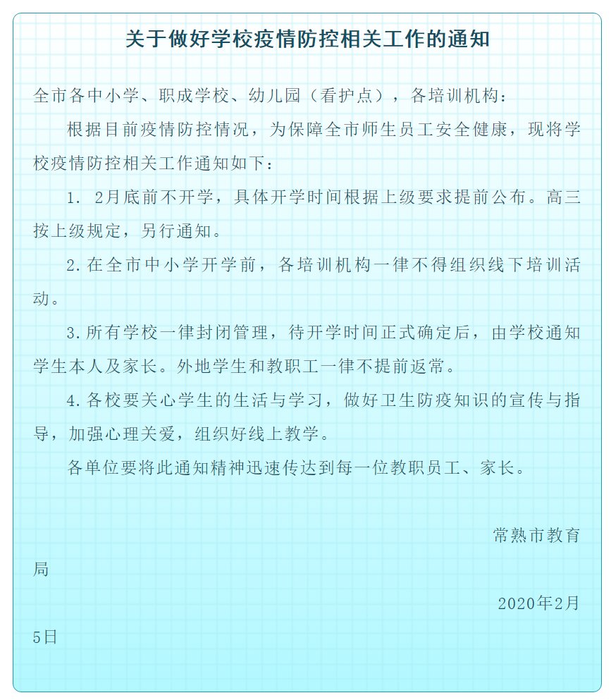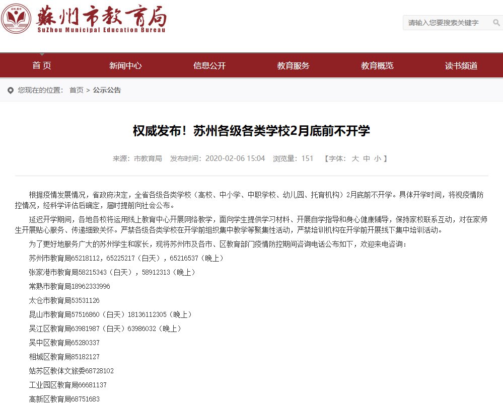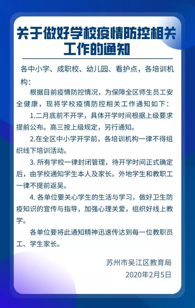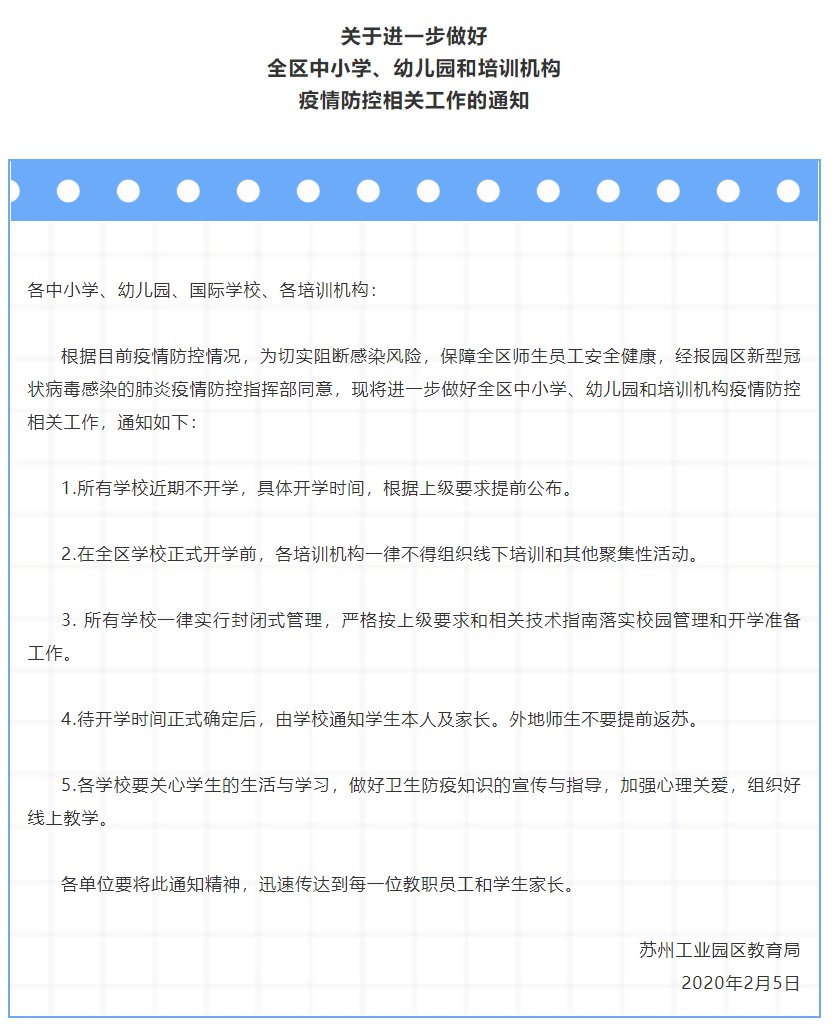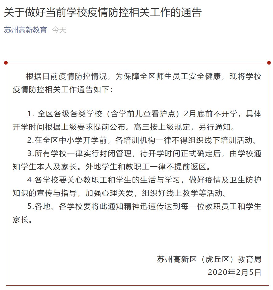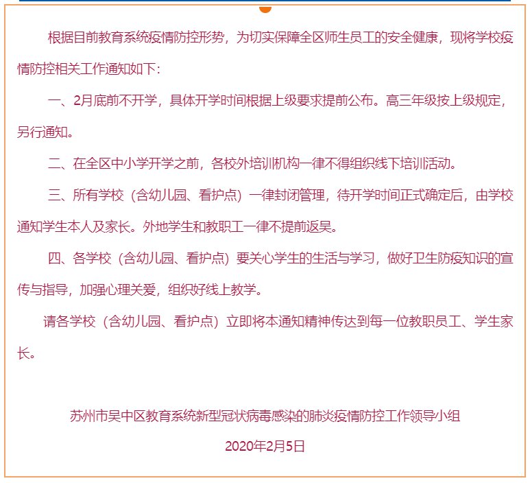 苏州肺炎期间学校延期开学通知(苏州开学延期吗)
