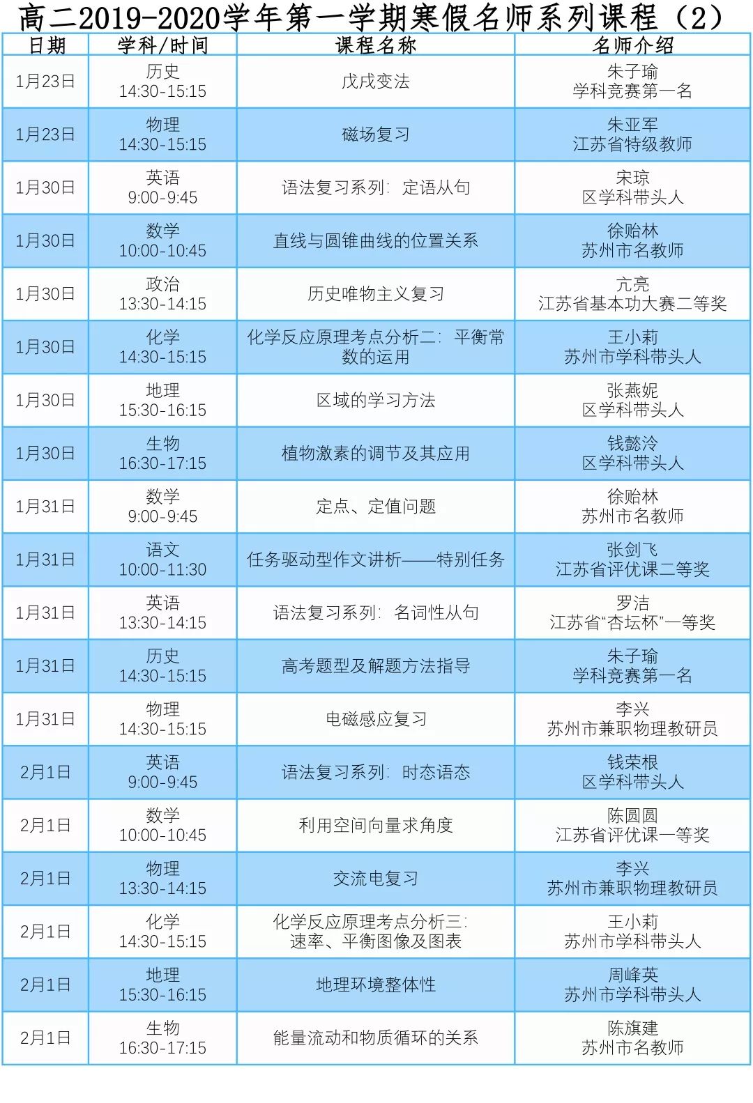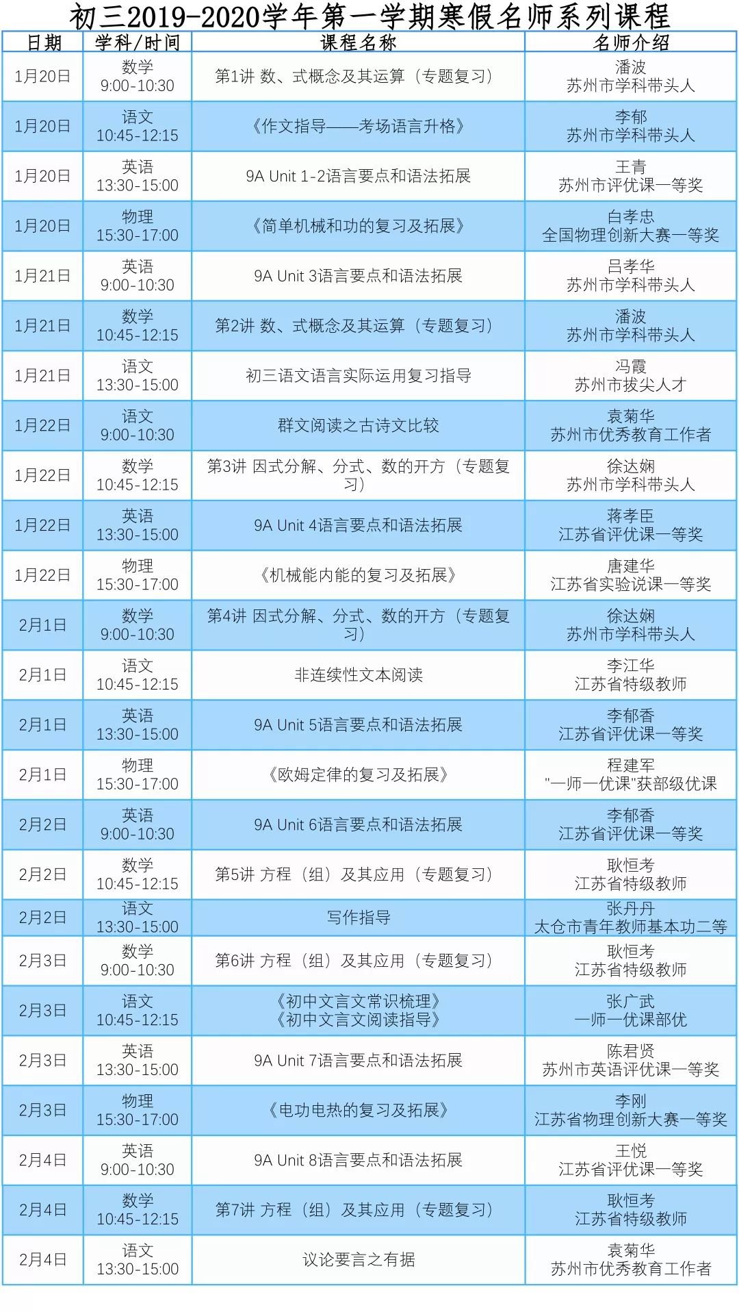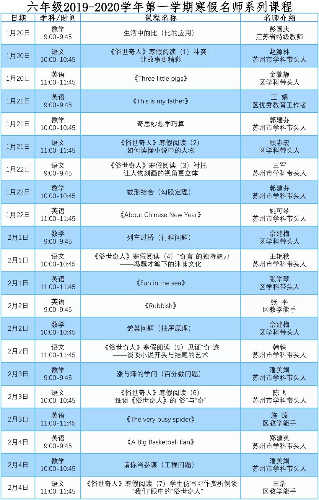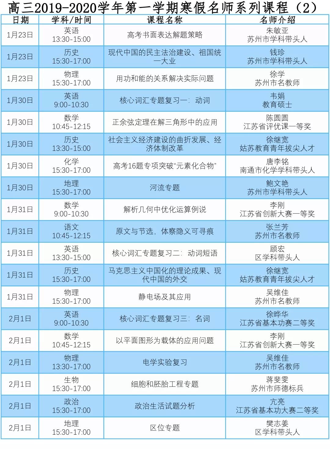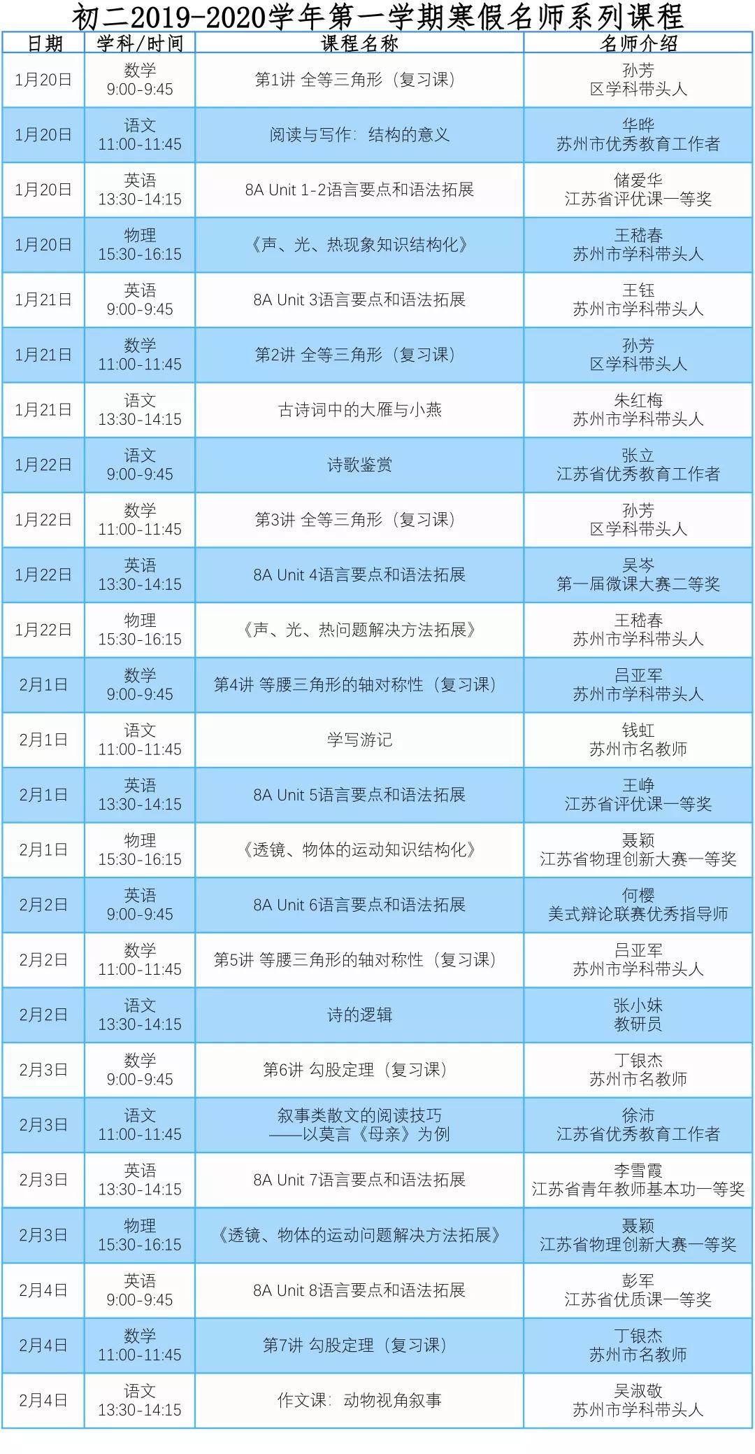 为满足学生在寒假及寒假延长期学习需要,保证广大学生在家学习的质量和效果,经研究决定在苏州线上教育中心原有寒假名师在线课程基础上,进一步扩大课程服务内容。