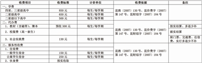 三、公办职业高中、中专学校收费标准