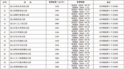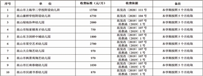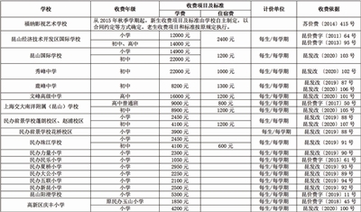 2020年昆山中小学、幼儿园学费收费标准