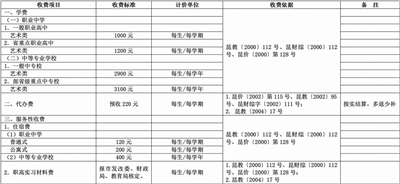 2.艺术类收费标准及代办费、择校费、服务性收费标准为:
