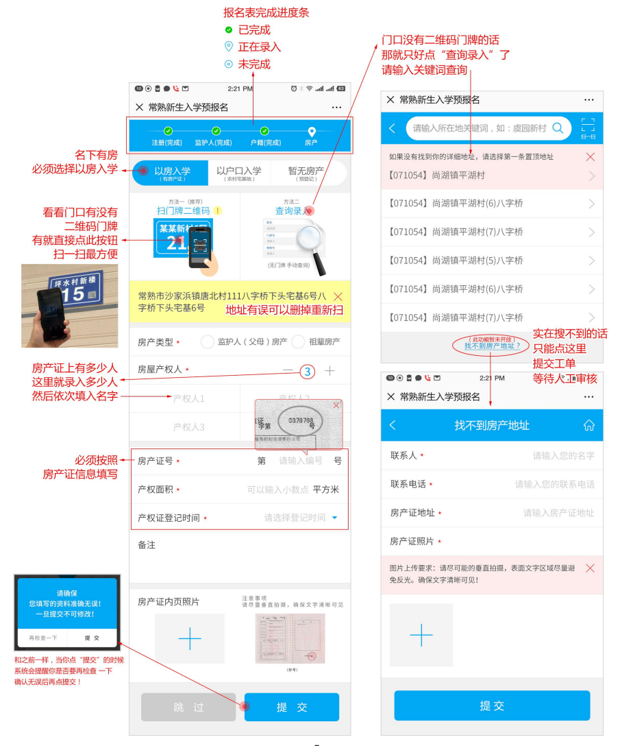 ④填写房产户籍信息(本市无房产证的乡镇宅基地房,选择以户口入学)。