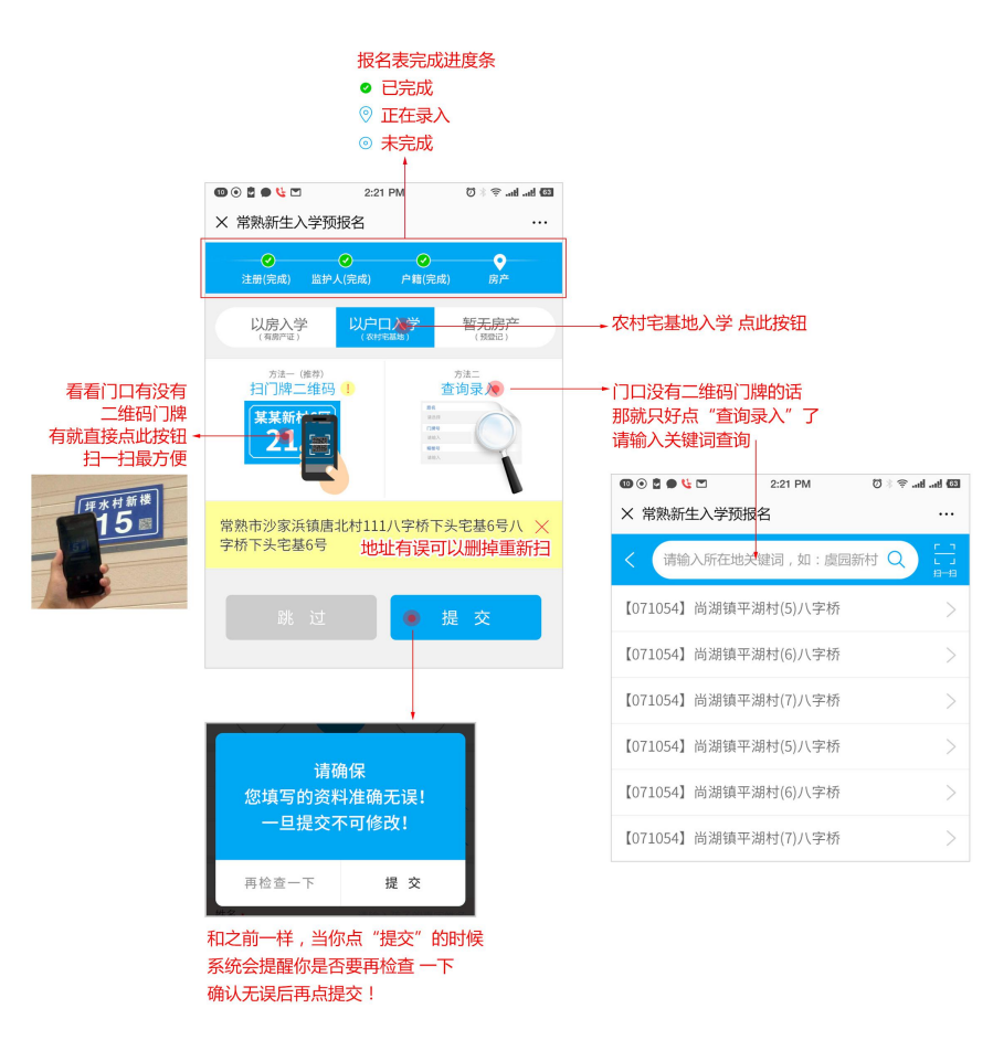 5)乡镇宅基地无房产证,选择入“以户口入学”并输入户口地址,户口地址可以只找到村,村没有门牌号的可以不输。