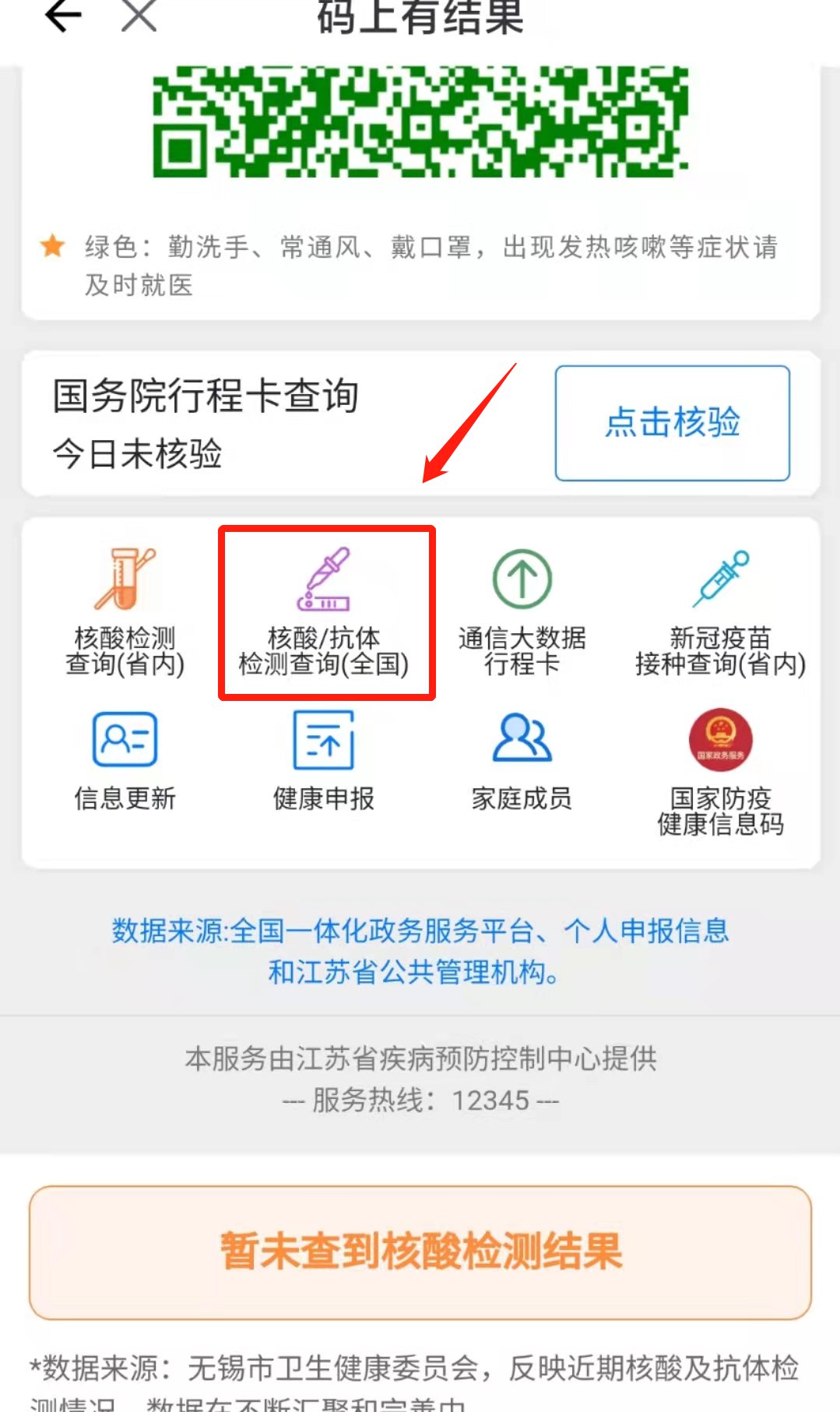 注意:刚进入“码上有结果”,会显示【暂未查到核酸检测结果】,不要从此入口进入查询