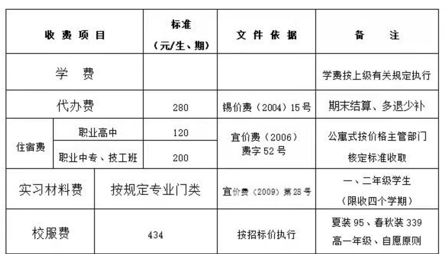 宜兴市2022年春季学期职业类学校收费项目与标准:
