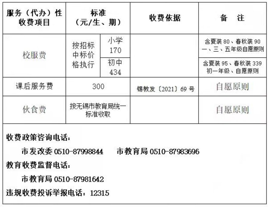 宜兴市2022年春季学期公办义务教育阶段学校收费项目与标准: