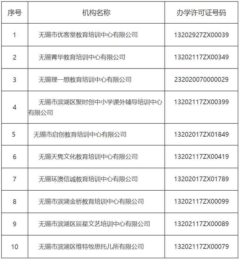 10 | 无锡唯尔教育培训中心有限公司 | 13202927ZX00159 |