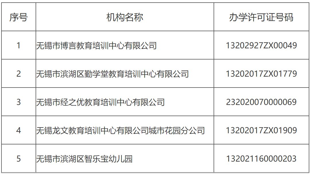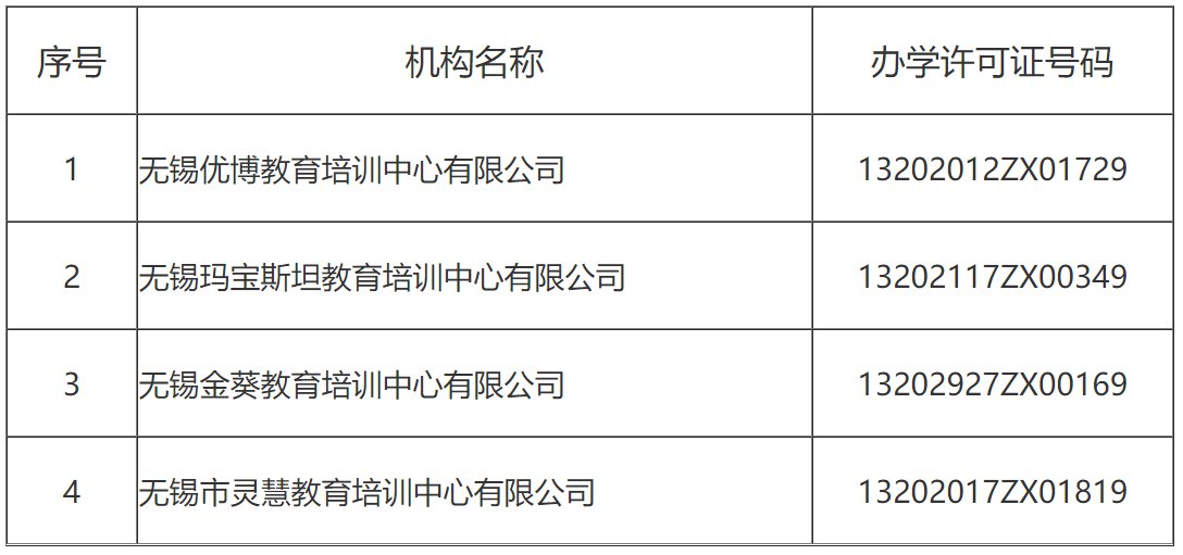 无锡经开区校外培训机构终止办学名单(持续更新)