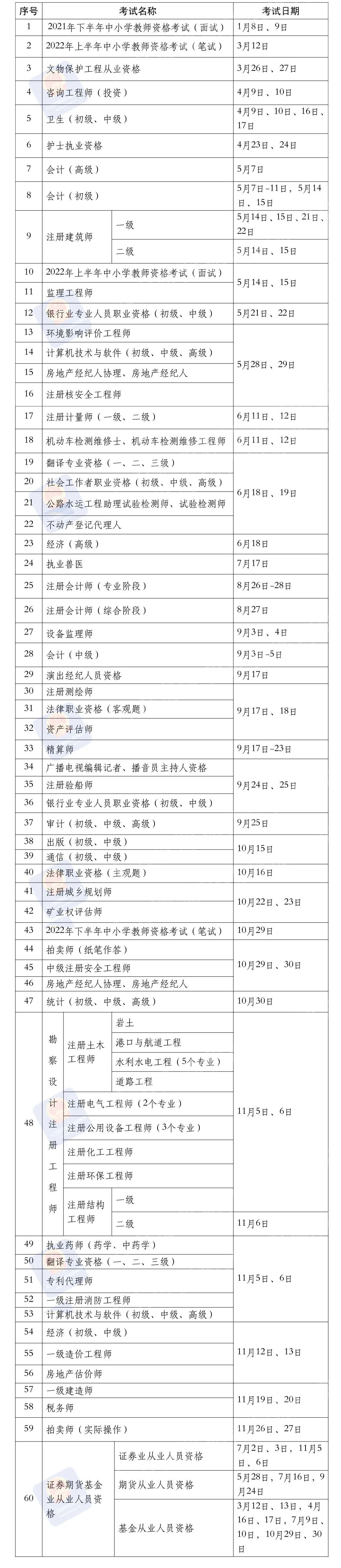 2022年度专业技术人员职业资格考试工作计划: