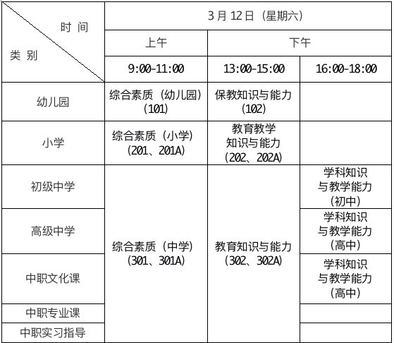 2022年上半年中小学教师资格考试(笔试)于3月12日(周六)举行