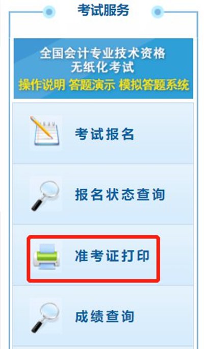 考生登录“全国会计资格评价网”(http://kzp.mof.gov.cn)自行打印准考证。