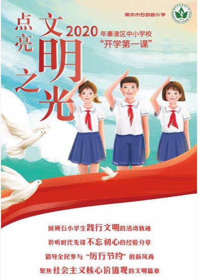 2020年9月1日,南京秦淮区委宣传部(文明办)、秦淮区教育局以新学期开学为契机,组织开展了2020年秦淮区中小学校“开学第一课”活动。