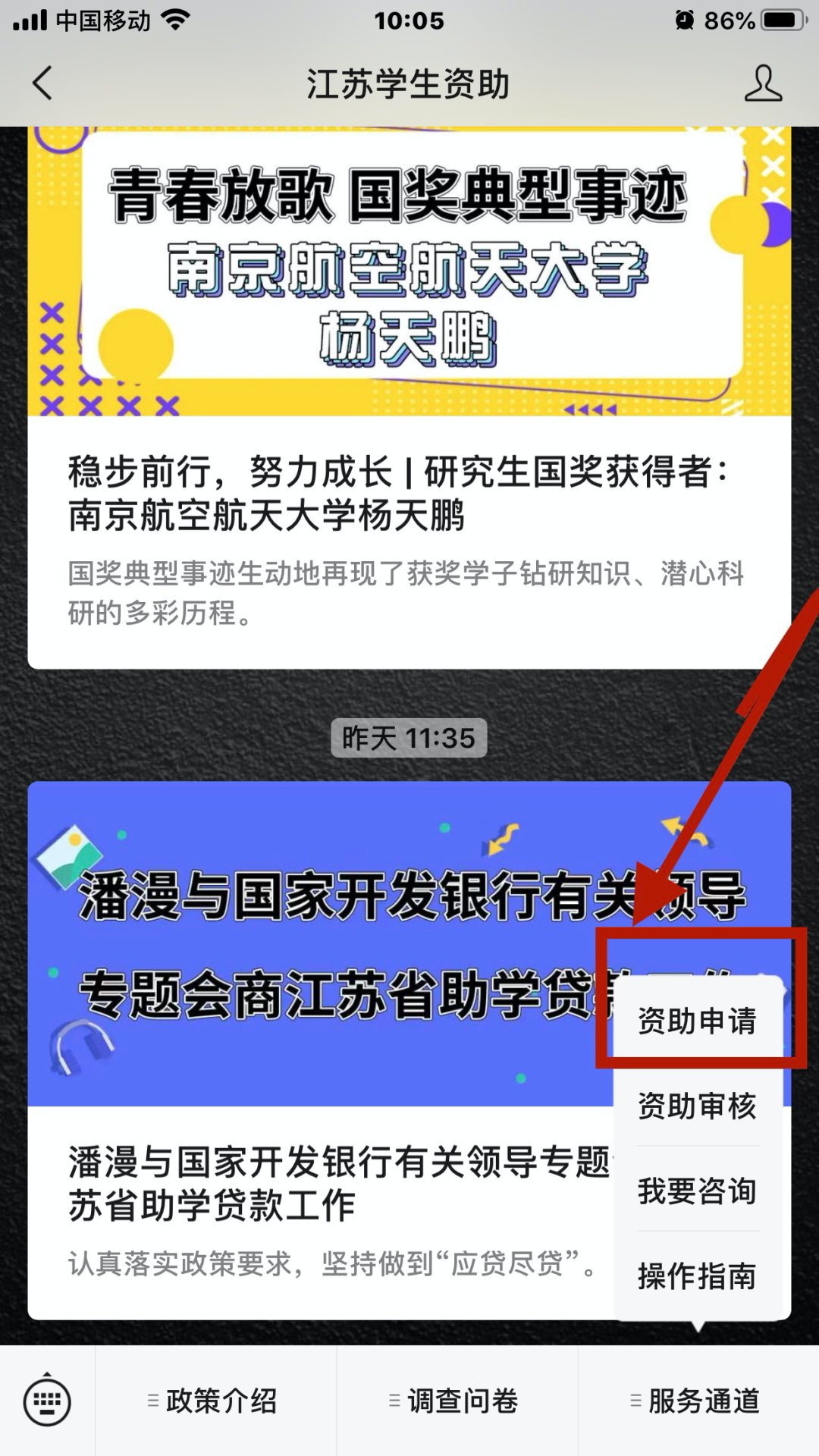1.移动端为学生或家长提交家庭经济信息和资助项目申请时使用,入口为“江苏学生资助”微信公众号的“服务通道”-“资助申请”菜单;