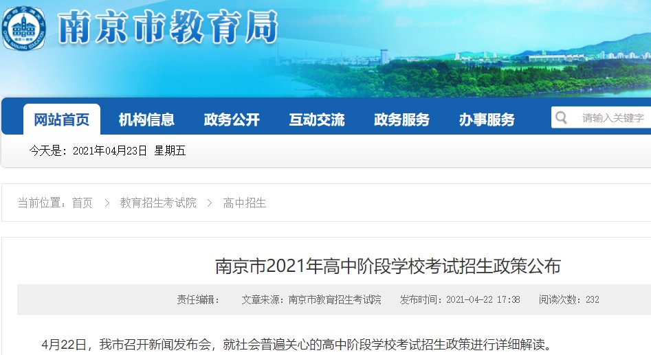 2021年4月22日,南京公布2021年高中阶段学校考试招生政策。☞