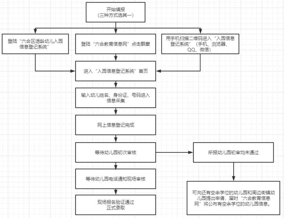 凡符合我区幼儿园招生条件、有入园需求的适龄幼儿监护人,需自行登录“六合区适龄幼儿入园信息登记系统”进行信息登记。逾期未上网登记者,视为自动放弃。