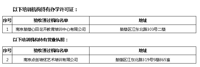 按照省市疫情防控指挥部统一部署,近期鼓楼区联防联控工作指挥部学校组组织相关部门和属地街道对已申请线下复课的社会培训机构(托育机构)进行了督查验收,现将第十六批通过验收的社会培训机构(托育机构)名单公示如下: