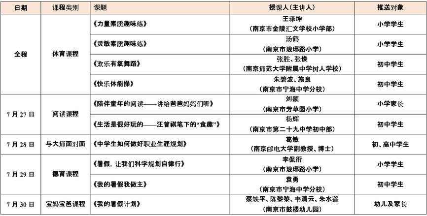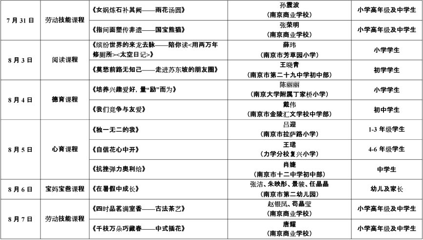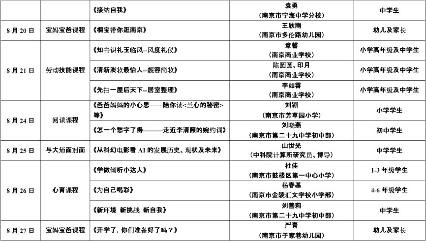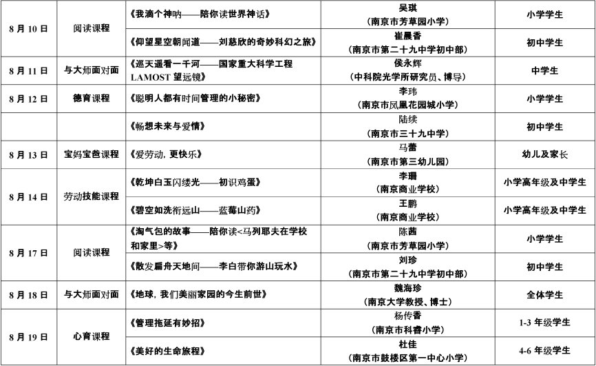 2020年暑假南京鼓楼e学校线上课程表一览