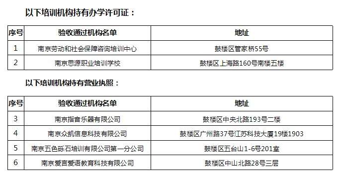 按照省市疫情防控指挥部统一部署,近期鼓楼区联防联控工作指挥部学校组组织相关部门和属地街道对已申请线下复课的社会培训机构(托育机构)进行了督查验收,现将第十四批通过验收的社会培训机构(托育机构)名单公示如下: