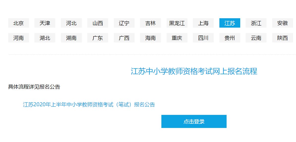 1、登录。考生登录中小学教师资格证考试报名官网(http://ntce.neea.edu.cn/),查看江苏省报名公告,按照导航页面指引进入江苏省报名入口。