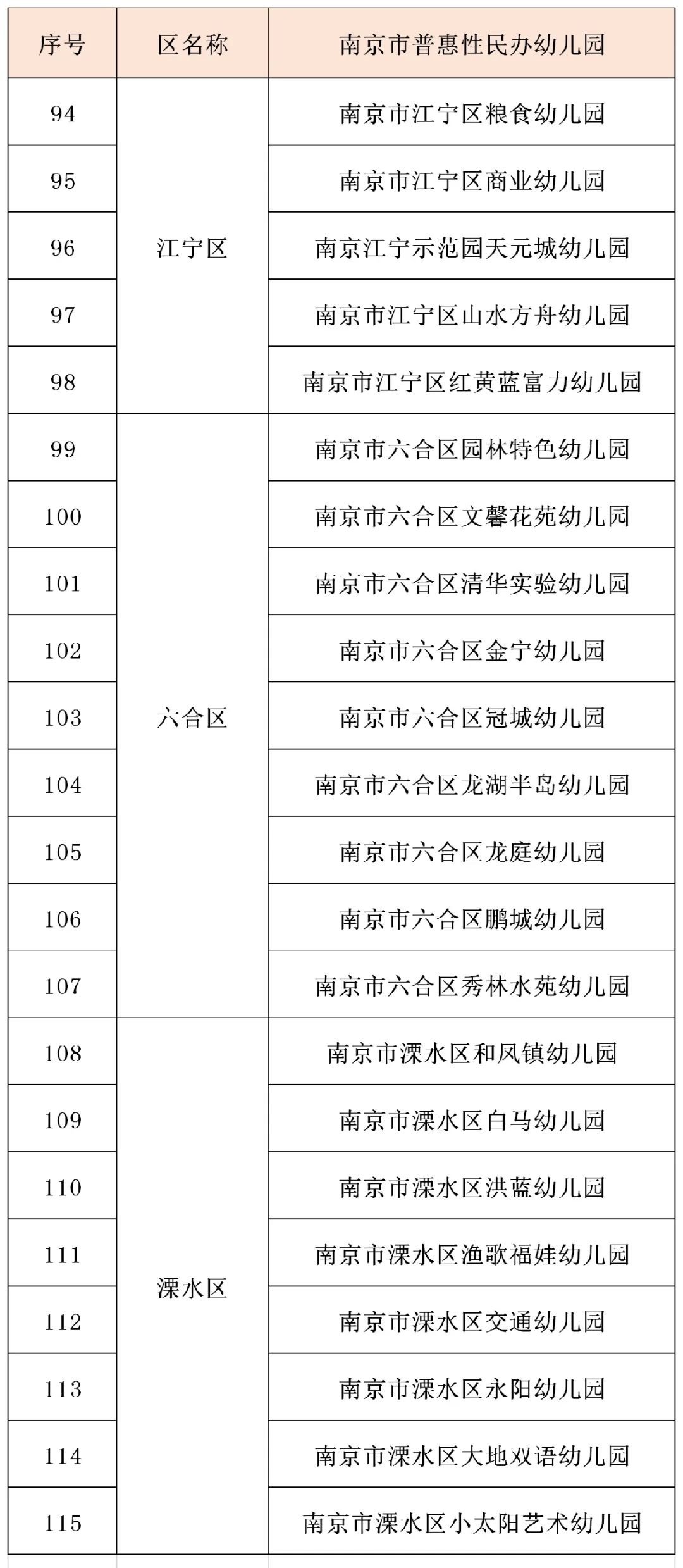 以上115家南京市普惠性民办幼儿园从2020年秋季学期开始,按照普惠性民办幼儿园收费标准向幼儿家长收取保育教育费。