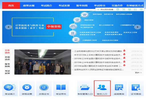 第一步:打开“中国计算机技术职业资格网”(http://www.ruankao.org.cn),从网页中间的报名入口,点击进入。