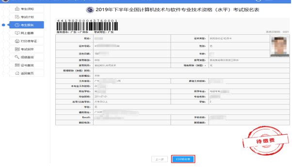 第八步:打印考生报名表。