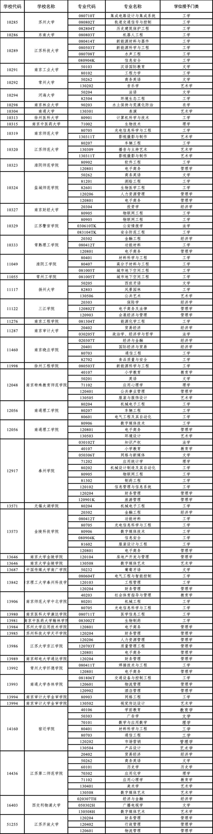 根据国务院学位委员会、教育部《关于下放学士学位授予单位审批权的通知》(学位〔1999〕3号)精神以及省学位委员会《关于开展2020年学士学位授权专业增列审核工作的通知》(苏学位办〔2020〕5号)要求,根据专家评审、复核意见,经研究,同意增列苏州大学等47所高校的129个专业为学士学位授权专业。具体名单见附件。