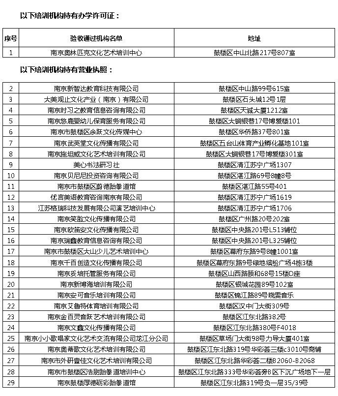 鼓楼区第七批通过验收的社会培训机构(托育机构)名单公示如下: