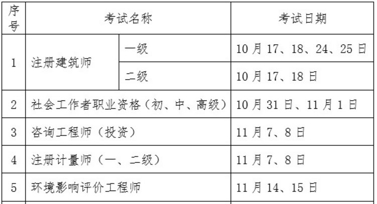 根据新冠肺炎疫情防控进展情况,经商有关部门,原计划于今年上半年举行的2020年度注册建筑师等职业资格考试,调整至今年下半年举行。具体安排如下: