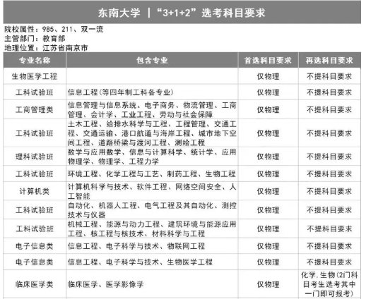 【东南大学“3+1+2”选考科目要求】