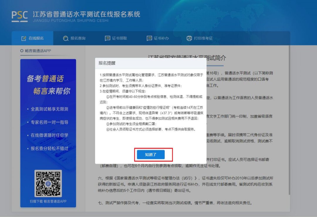 1、实名注册并登陆江苏政务服务网(http://www.jszwfw.gov.cn),点击进入普通话水平测试在线报名系统或进入省教育厅旗舰店进行报名。