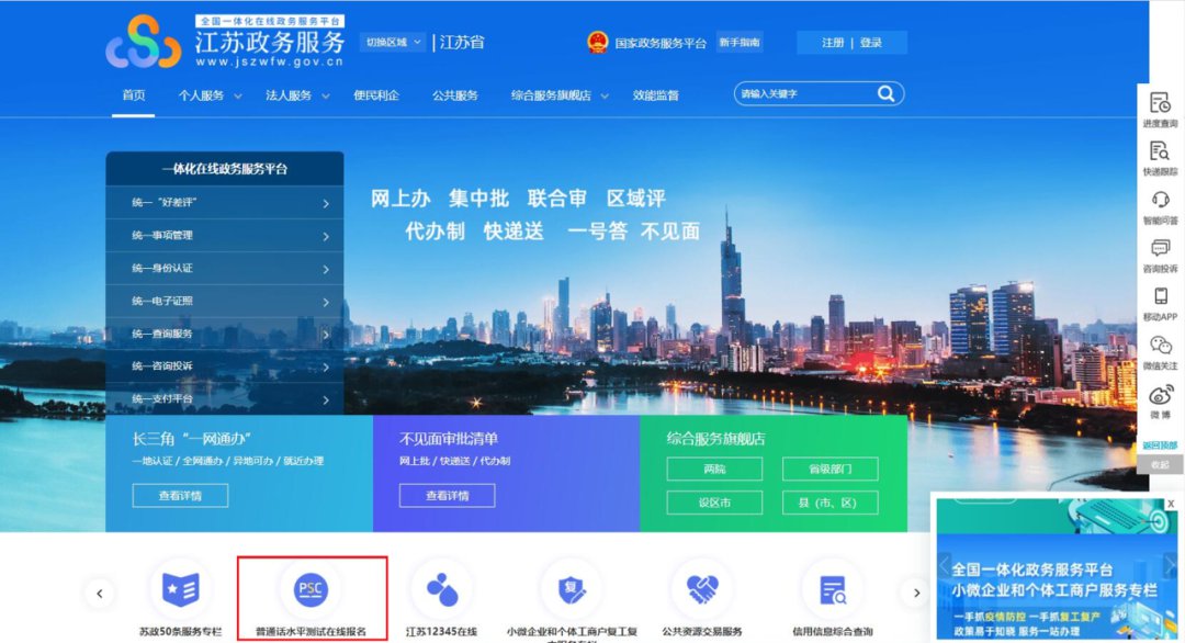江苏政务服务网上报名通道: