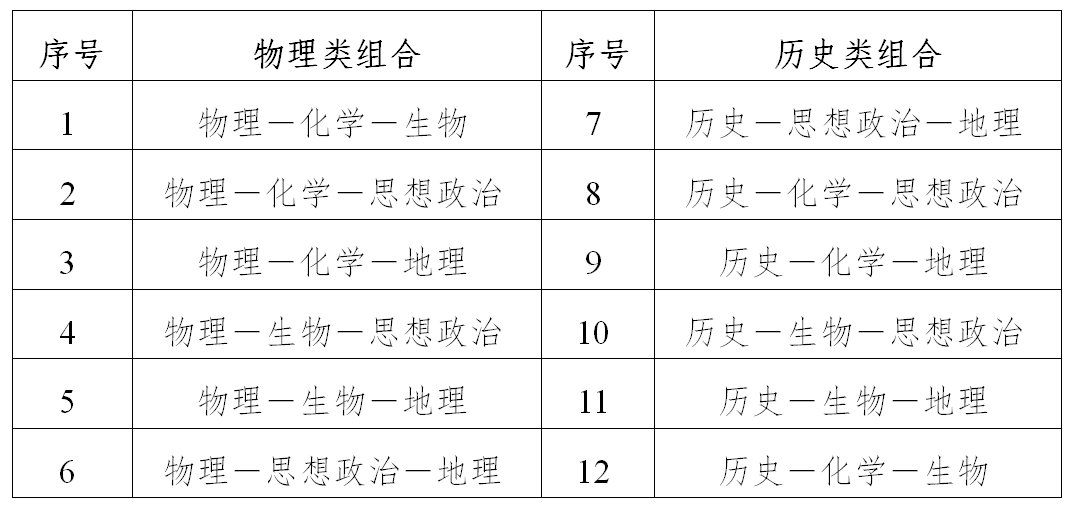 答:选择性考试科目理论上有12种组合,具体组合如下: