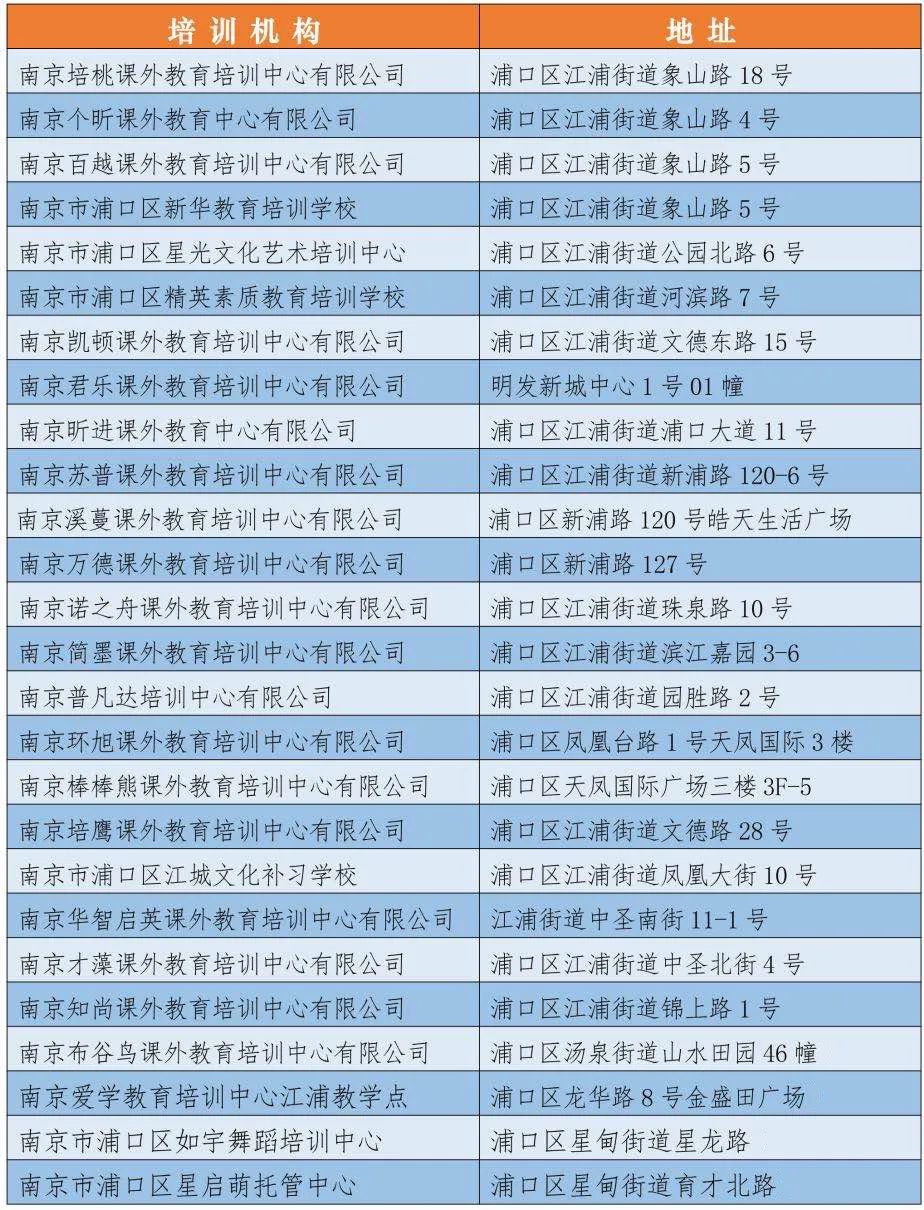 浦口区培训机构复课名单有最新消息,本文章将第一时间更新。