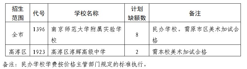 提前批次中,尚有部分招收美术特长生的普通高中未完成招生计划,需征求志愿。具体信息如下:
