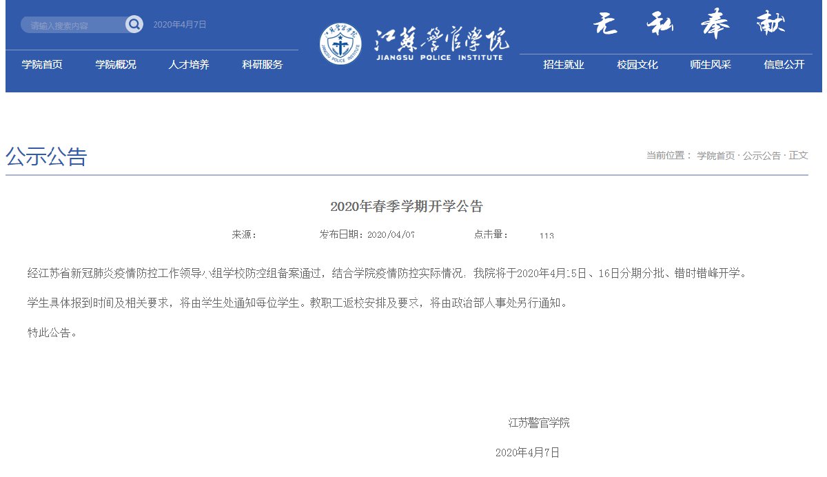 2020江苏警官学院什么时候能开学 江苏警官学院几号开学
