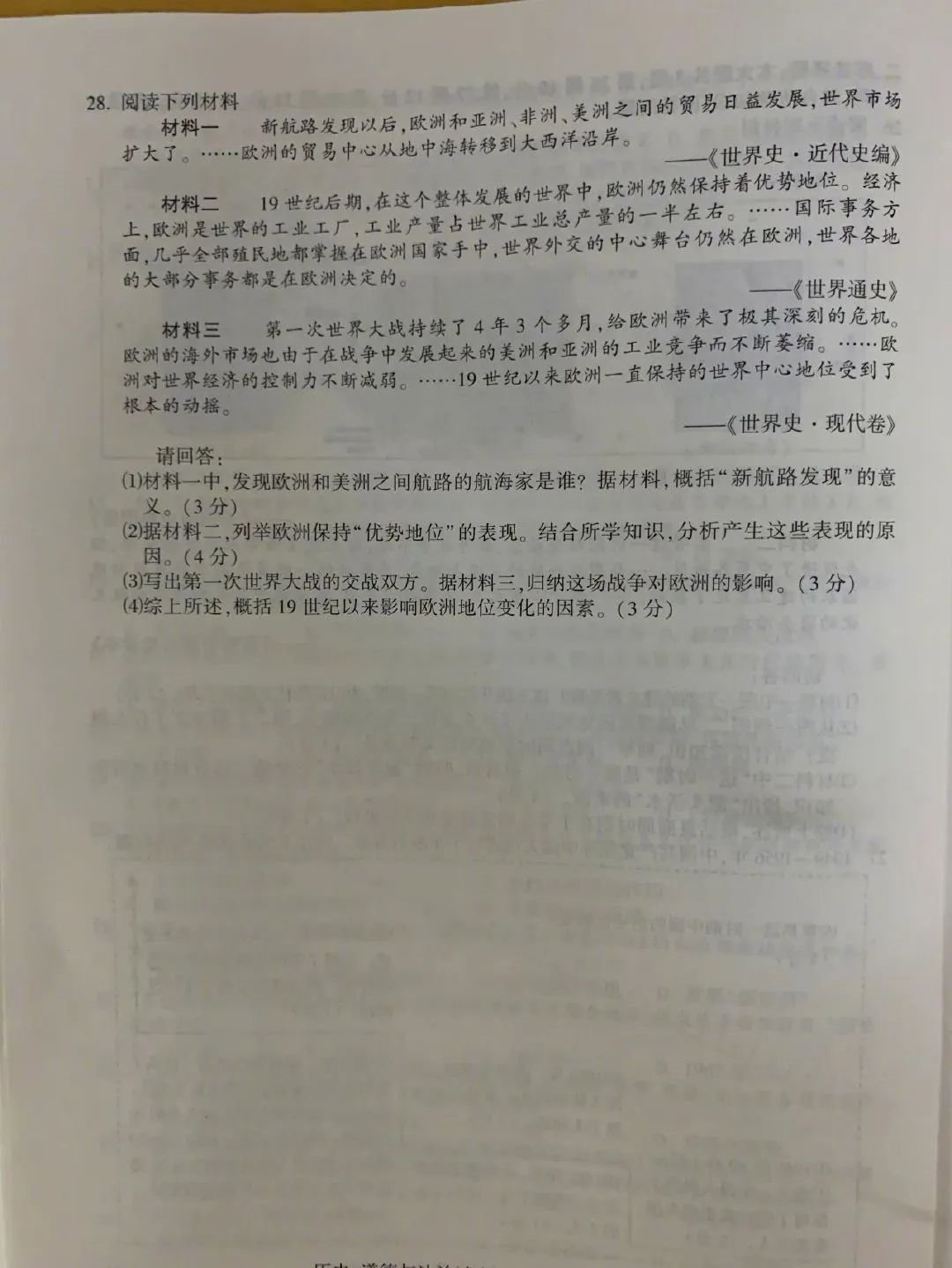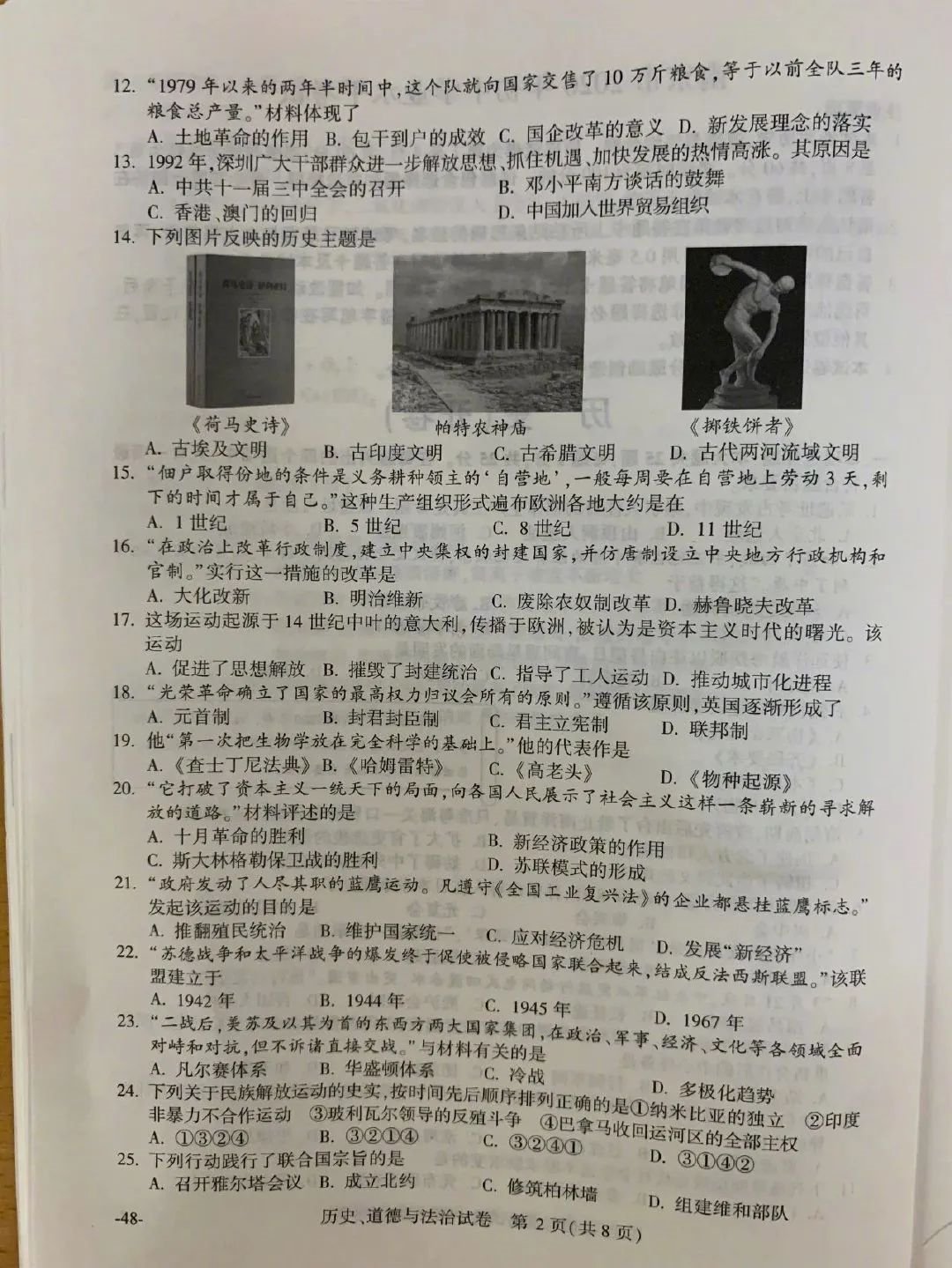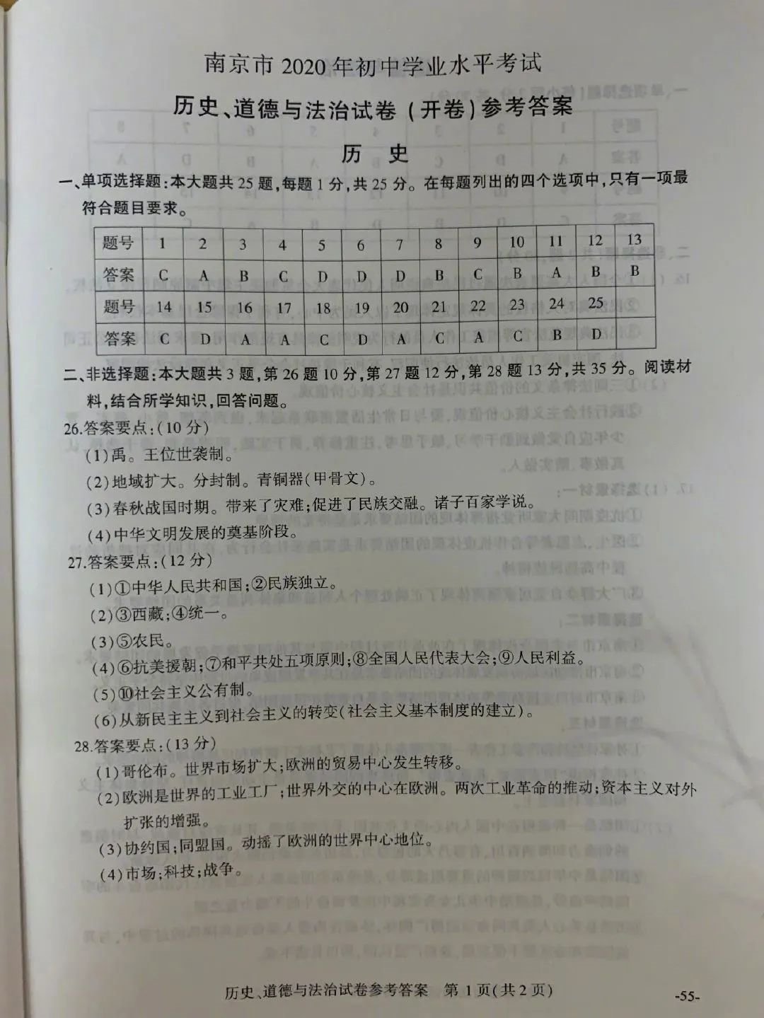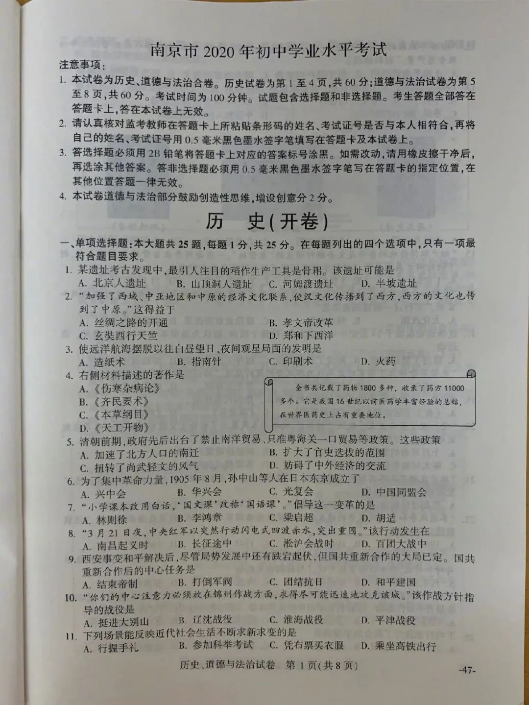 2020年南京市中考历史试卷及答案: