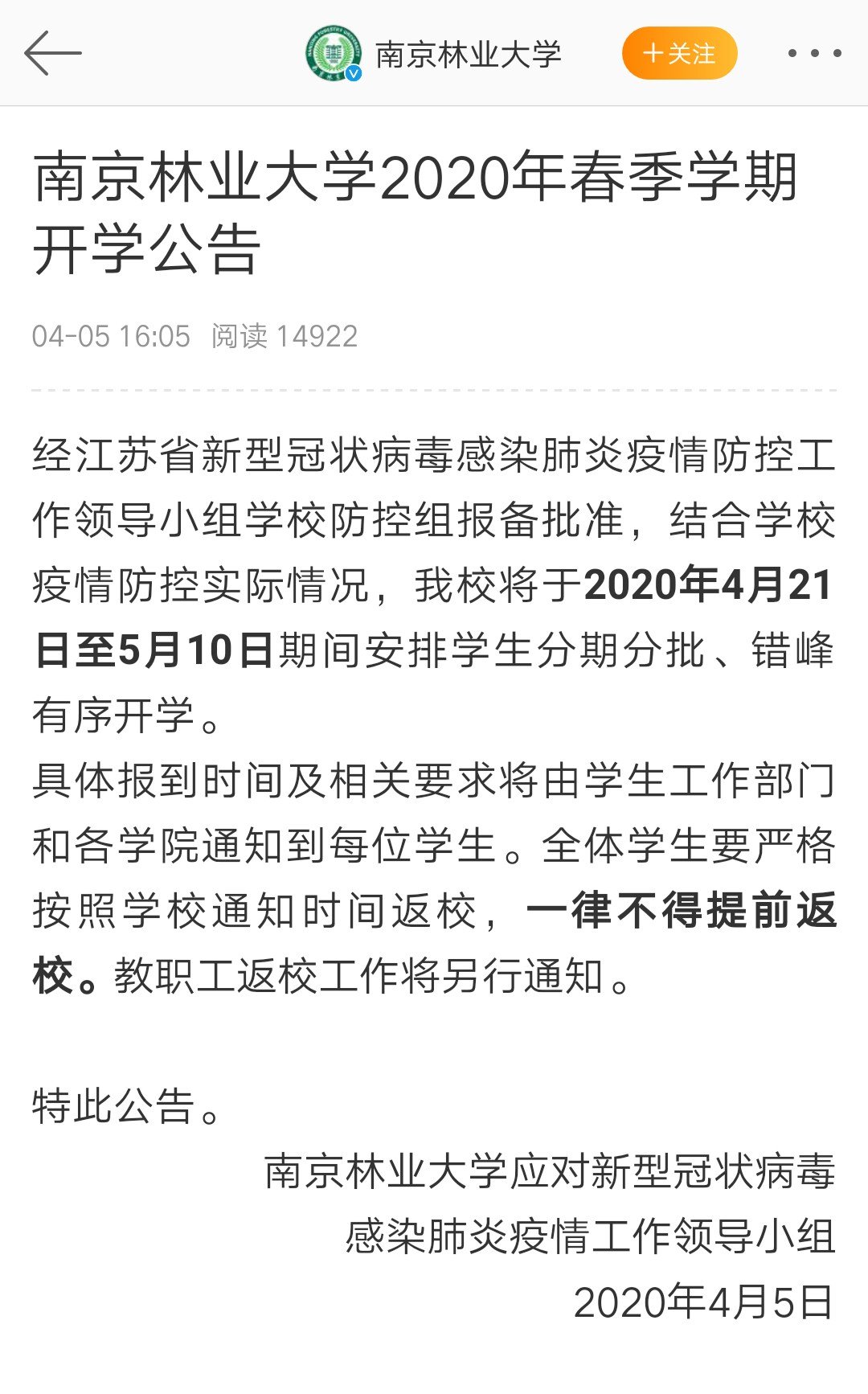 高校以4月13日为开学起始时间做好开学准备工作,具体开学时间经批准后由学校发布。
