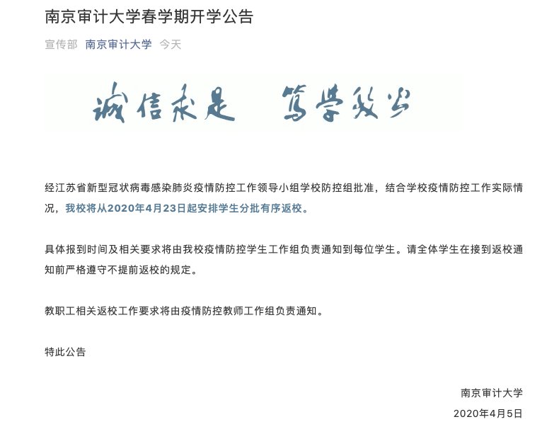 经江苏省新型冠状病毒感染肺炎疫情防控工作,领导小组学校防控组备案通过,结合疫情防控实际情况,南京一批高校确定开学时间。