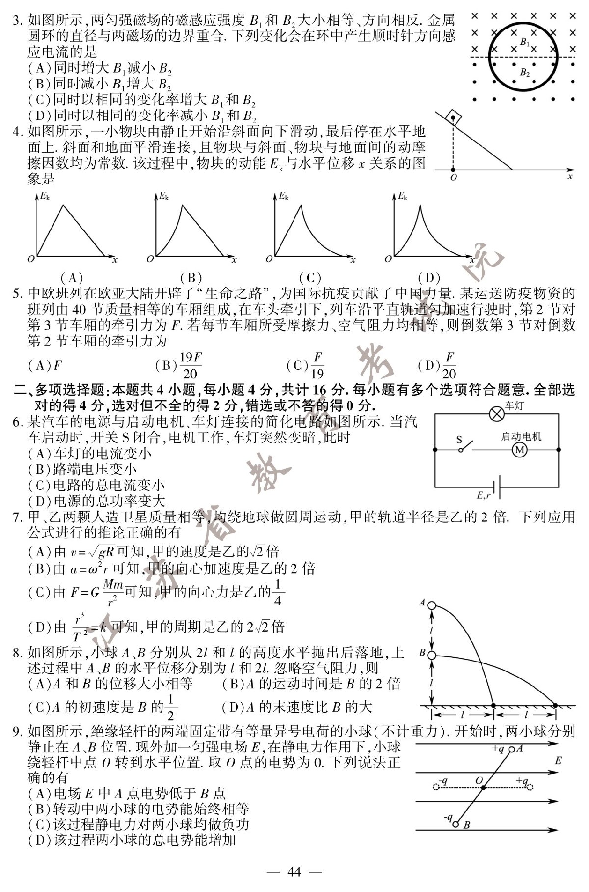 2020江苏省高考试卷真题物理卷及参考答案(附成绩查询电话)