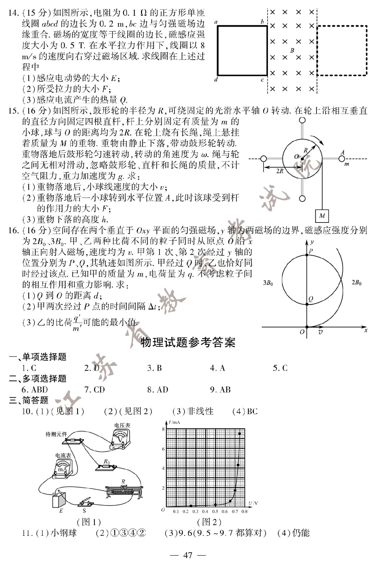 2020年江苏高考物理试题+参考答案: