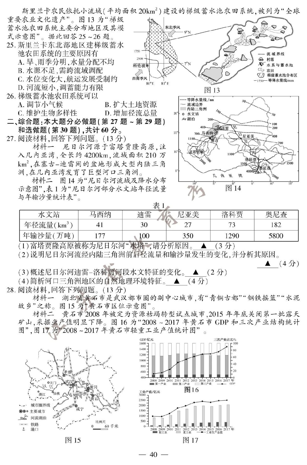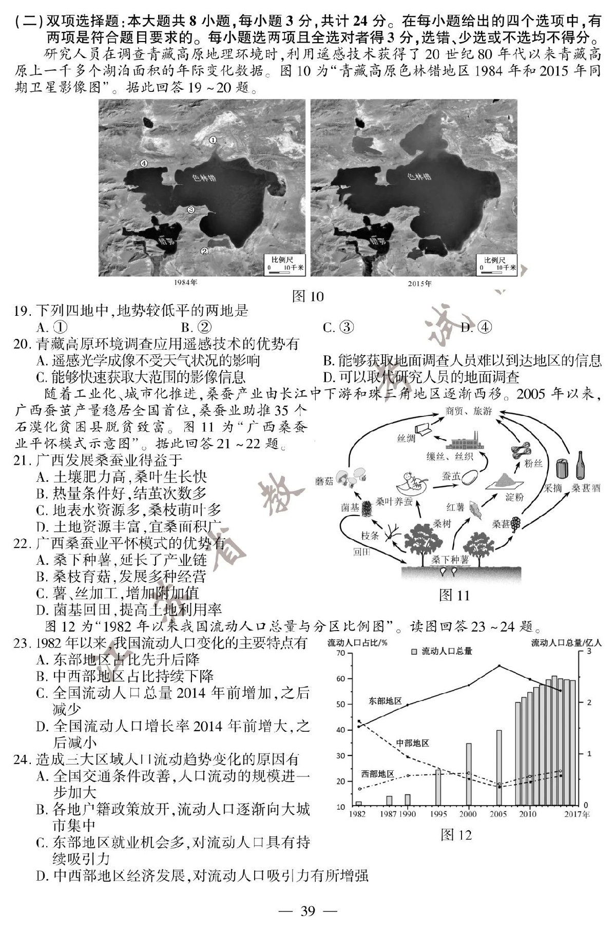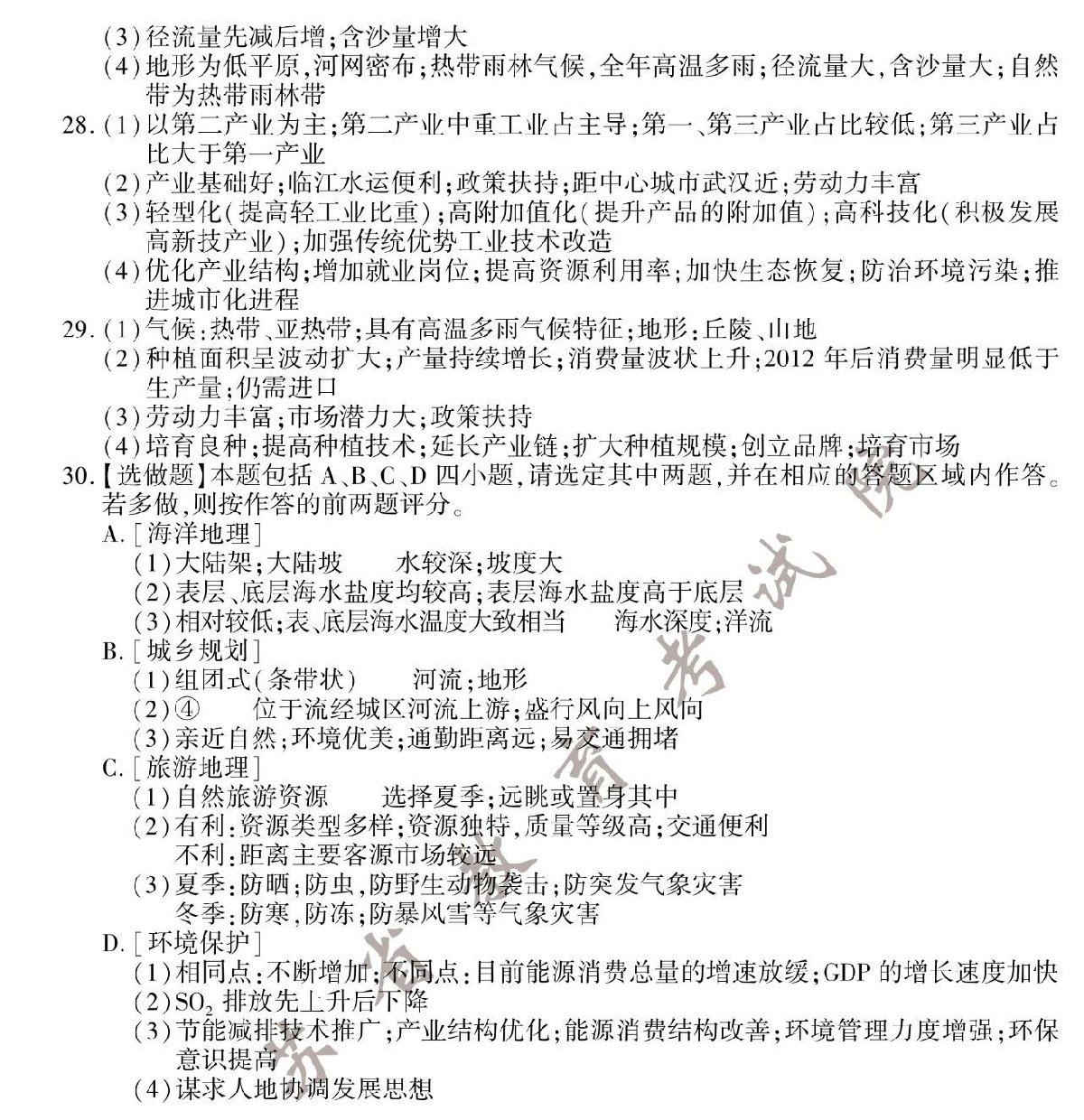 江苏2020年高考试卷地理卷试题+参考答案+成绩查询安排
