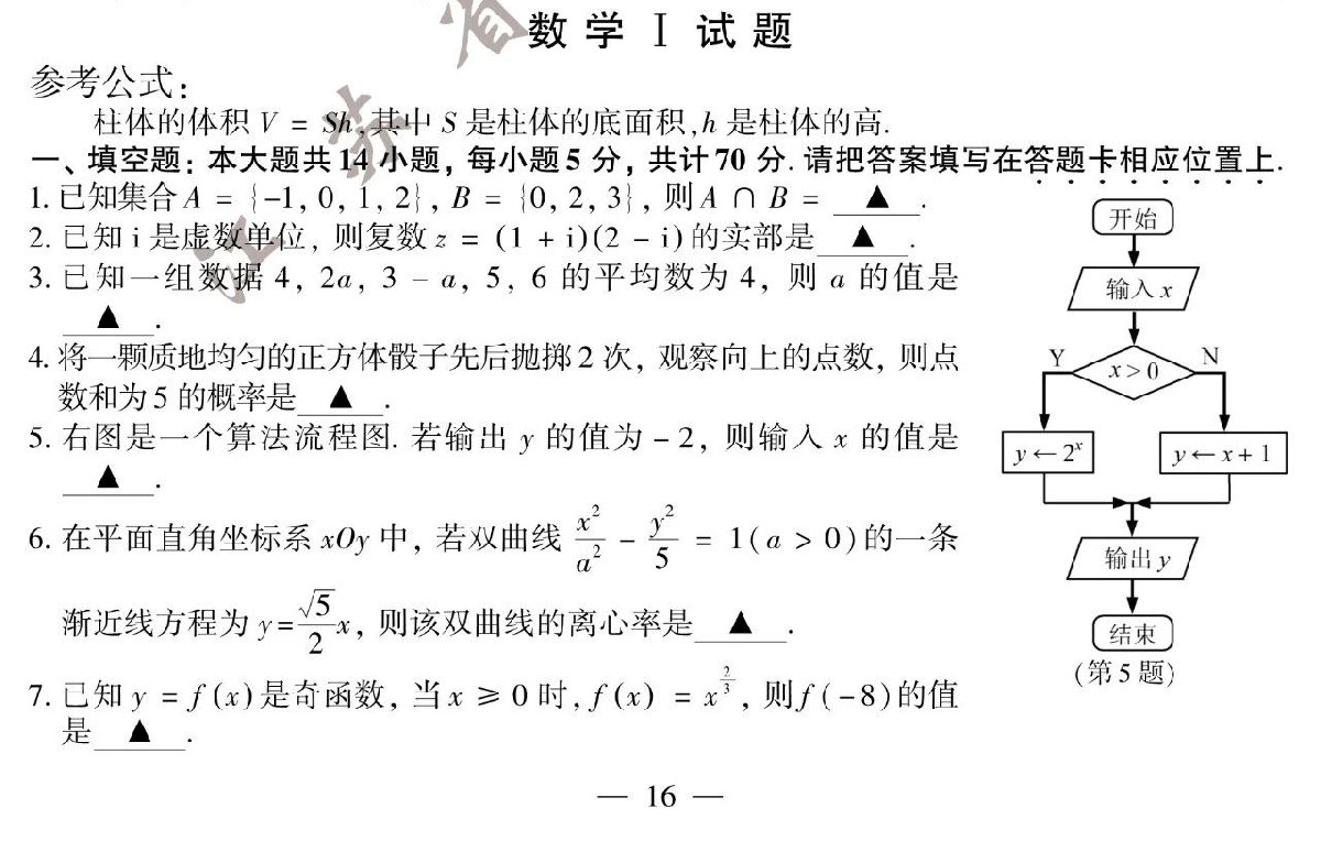 2020江苏高考数学真题试卷+答案解析完整版一览