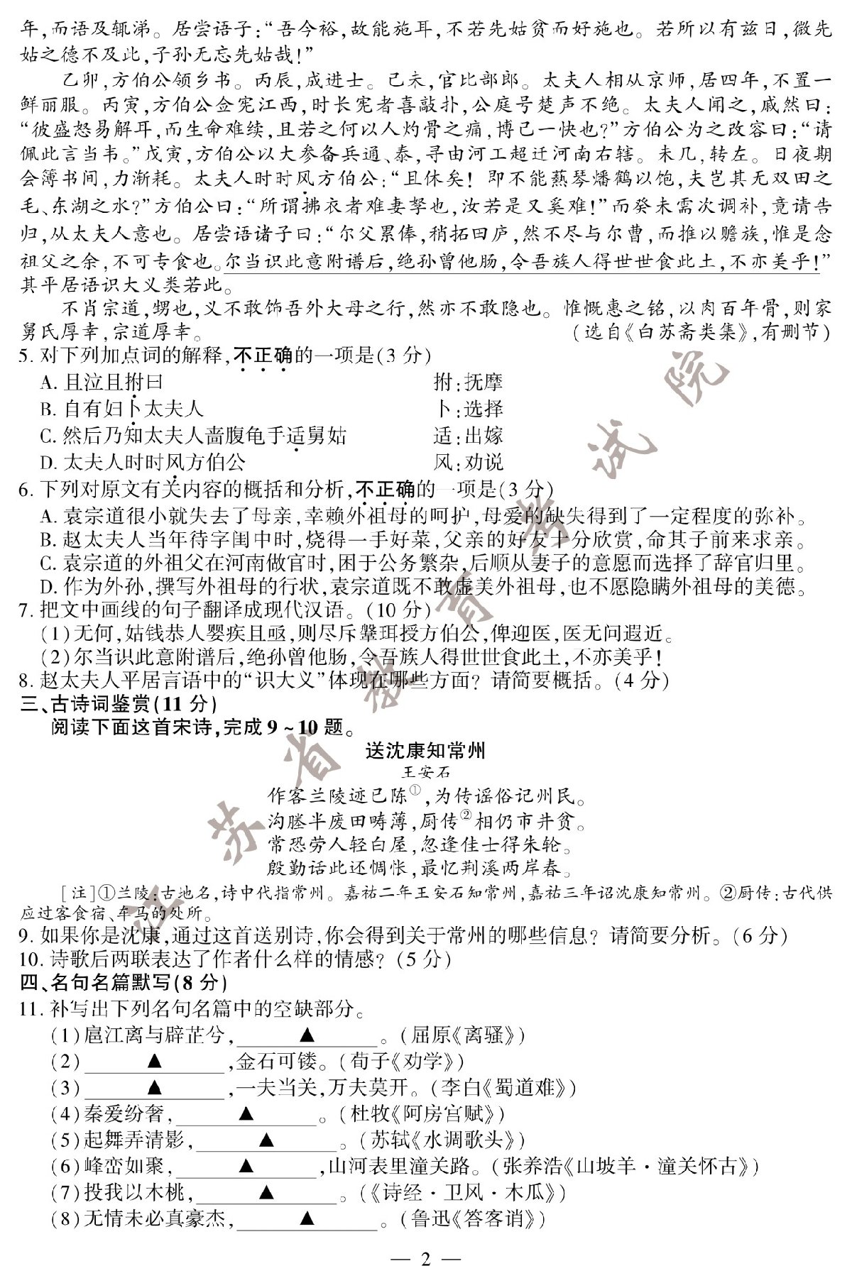 2020年江苏高考语文试题及参考答案 2020年江苏高考语文试题及答案解析
