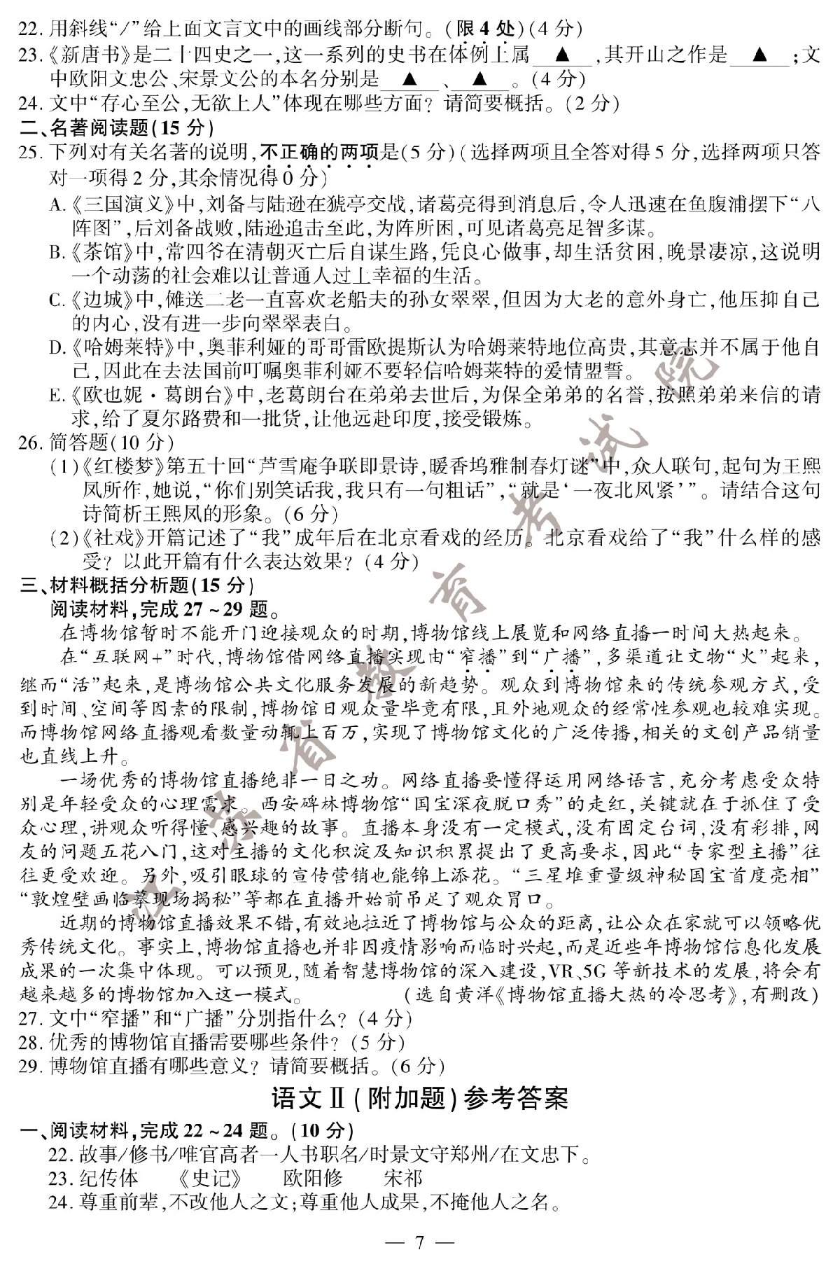 2020年江苏高考语文试题+参考答案如下: