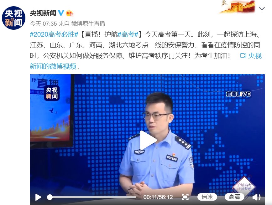 直播内容:民警解读各地公安机关维护高考秩序措施,各地民警高考护校实况展示。