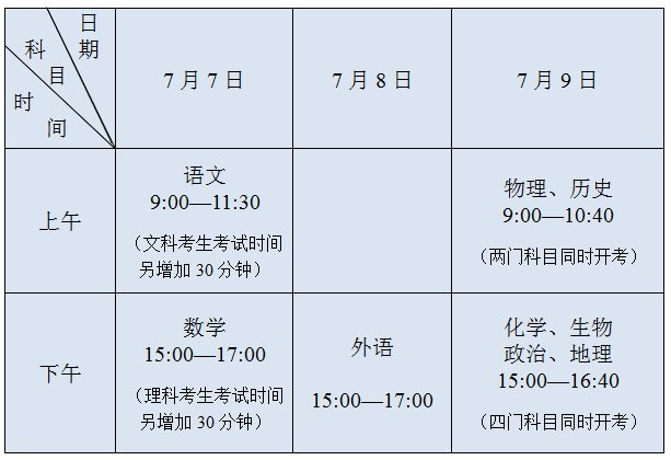 根据教育部2020年全国高考时间安排,2020年江苏省普通高校招生语文、数学、外语科目考试安排在7月7日至8日举行。经省高校招生委员会研究,2020年我省普通高中学业水平测试选修科目考试安排在7月9日举行。