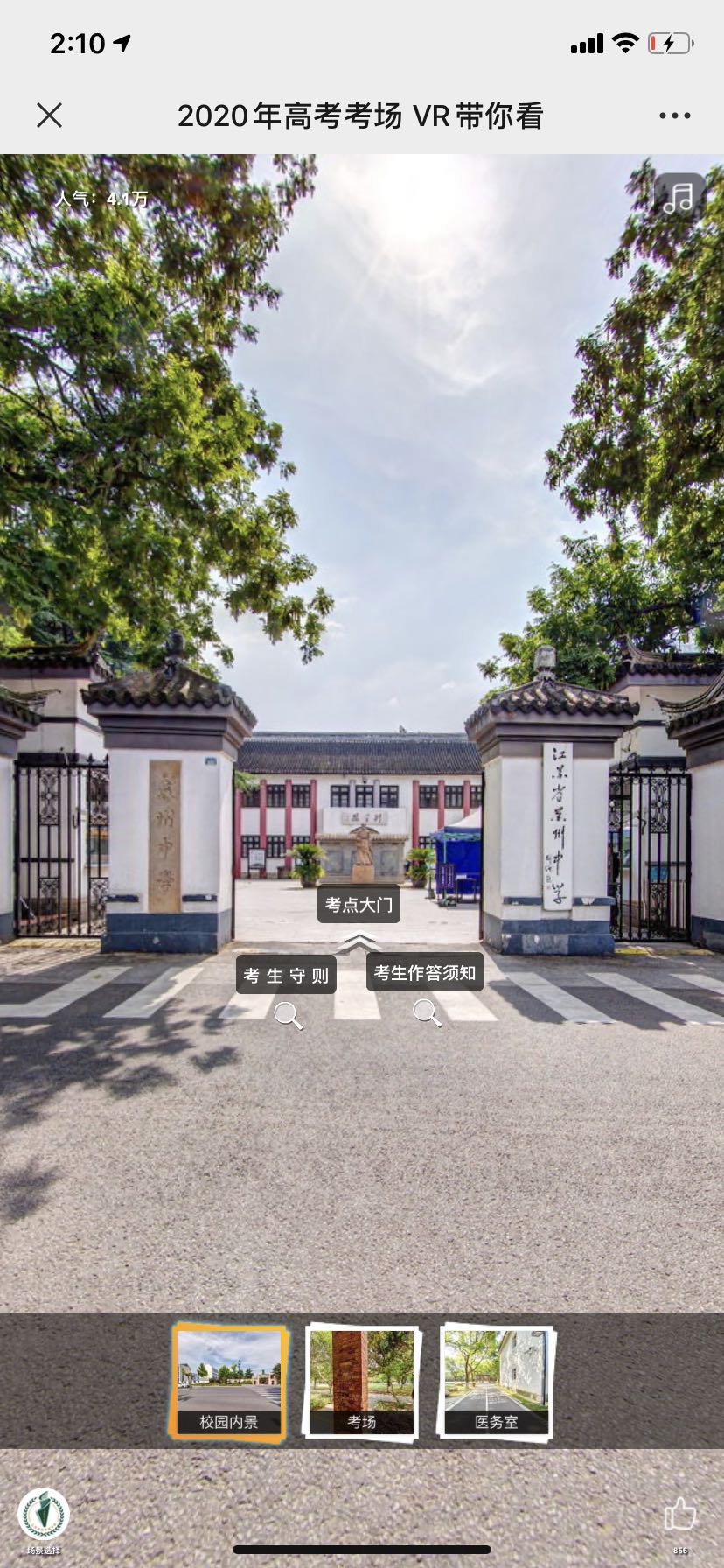 2020江苏高考考场VR在线查看入口